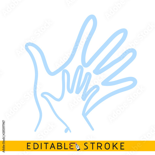 © agaten, Fototapeta premium Child hand in adult hand icon. Line doodle sketch. Editable stroke icon.