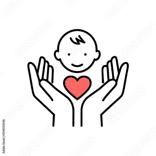 © Irina, Obraz premium Child held in hands with heart symbolizing care and protection