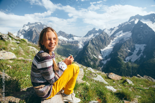 © Alena Ozerova, Naklejka premium Child hiker, alpine view