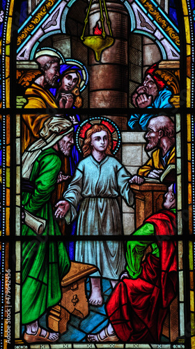 Obraz premium Child Jesus in the Temple with the doctors of the Law, stain glass window