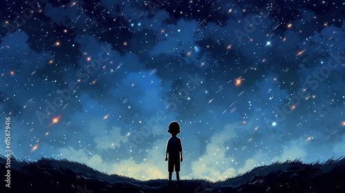Fototapeta premium child looks at the night sky