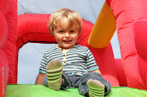 © Brian Jackson, Obraz premium Child on inflatable bouncy castle