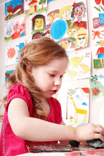 © Gennadiy Poznyakov, Fototapeta premium Child playing with clay in play room.