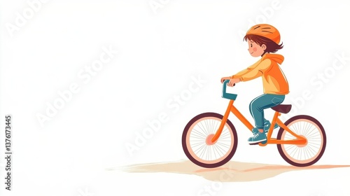 © Johannes, Fototapeta premium child riding a bike on white illustration
