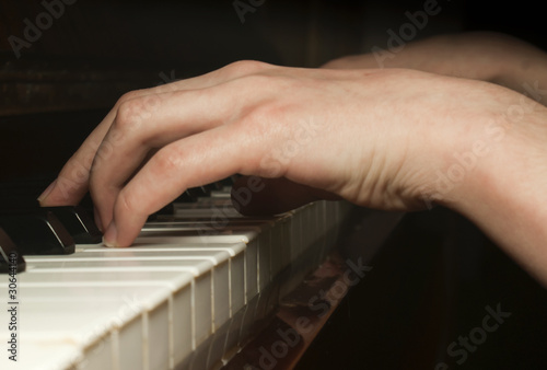 © andreykr, Fototapeta premium Child's hand playing on piano keyboard