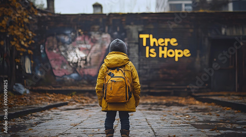 © Karen, Fototapeta premium Child standing before "There Is Hope" street art
