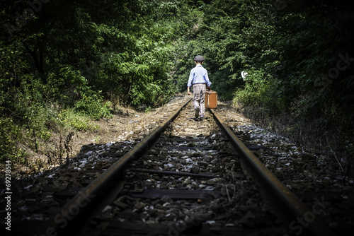 Fototapeta premium Child walking on railway