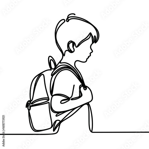 © MyDigitalCraft, Obraz premium Child wearing backpack looking downward