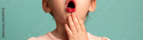 Obraz premium Child with a red nose, mouth open in a cough, hand on their throat, showing signs of sore throat, congestion, and cough from the flu