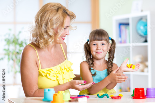 Fototapeta premium child with mom making by hands