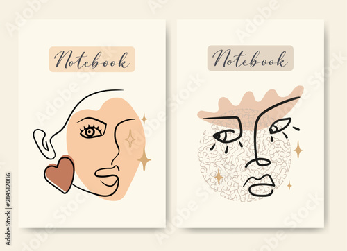 © Natalya Nepran, Fototapeta premium Childish school notebook cover design templates. Diary cover page design woman face illustration