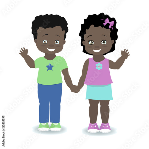 © All5, Fototapeta premium Children African, American. Boy and girl holding hands and smiling. Vector illustration