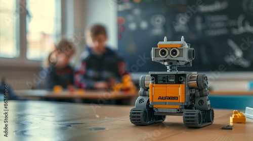 Obraz premium Children and Teacher Assemble Robots in Classroom
