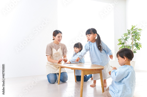 © maroke, Fototapeta premium Children and teacher at kindergarten