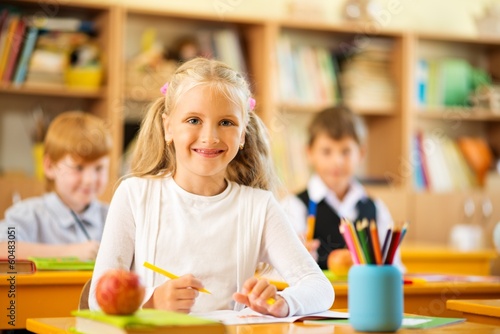 © Nejron Photo, Fototapeta premium Children behind school desks during lesson