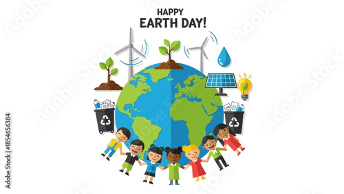 Obraz premium Children Celebrating Earth Day with Eco-Friendly Symbols and Globe