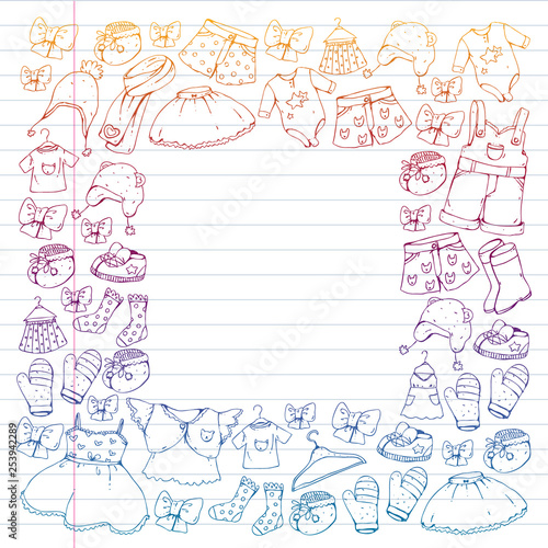 Fototapeta premium Children clothes. Background for babies, kids patterns.