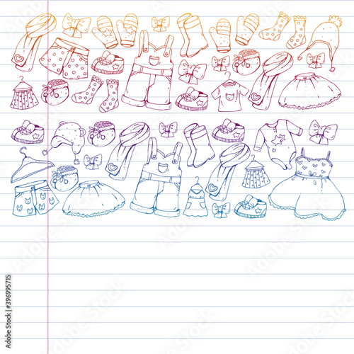 Fototapeta premium Children clothes. Background for babies, kids patterns.