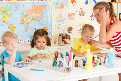 © amelaxa, Fototapeta premium Children draw in the classroom