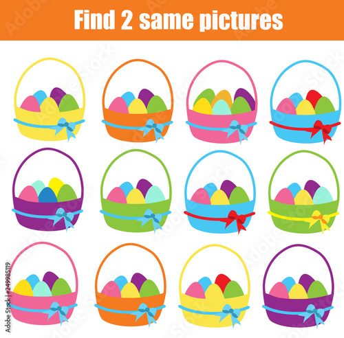 © ksuklein, Fototapeta premium Children educational game. Find two same pictures. Easter theme