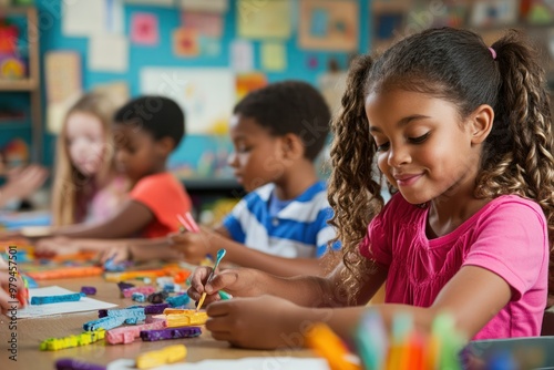 Fototapeta premium Children Engaged in Classroom Art Activities