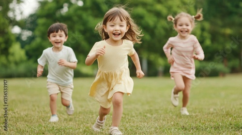 © Nongkhane, Obraz premium Children enjoying a fun day of play in a park outdoor environment joyful moments captured
