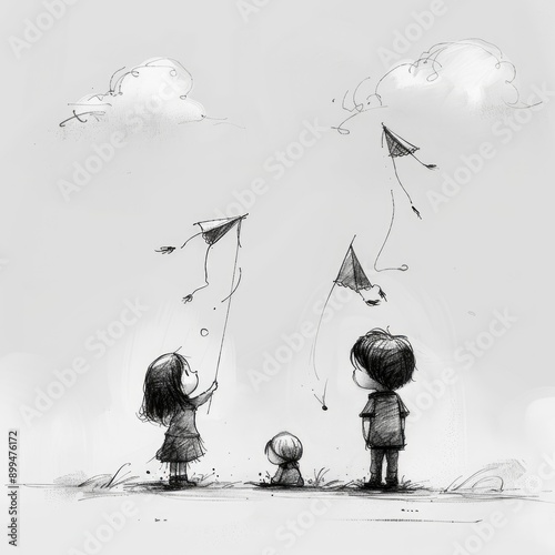 © Tungbackground, Naklejka premium Children Flying Kites in a