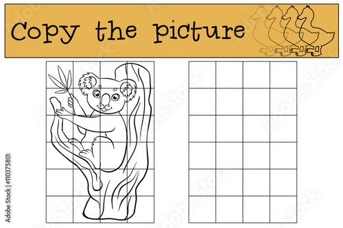 Fototapeta premium Children games: Copy the picture. Little cute koala sits on the