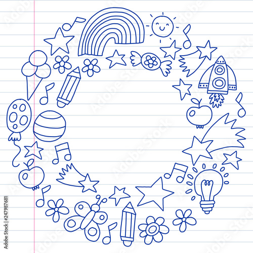 © Cepheia, Fototapeta premium Children garden, Patern, Hand drawn children garden elements pattern, doodle illustration, Vector, illustration.
