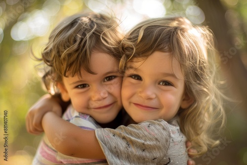 Fototapeta premium Children Girls Boys Childhood children older brothers and sisters love family...