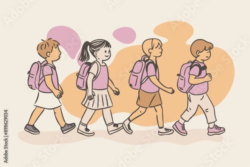 Naklejka premium Children go to school