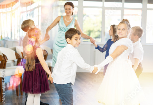 Fototapeta premium Children holding hands and dancing in a round dance - festive pastime