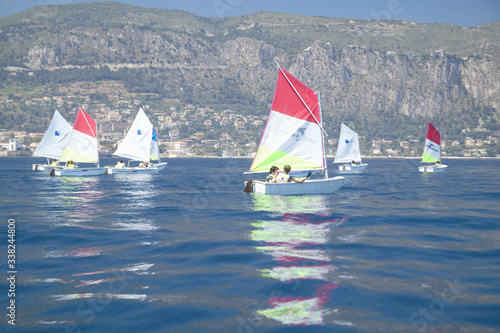 Fototapeta premium Children in sailing school in port at Saint Jean Cap Ferrat, French Riviera, France