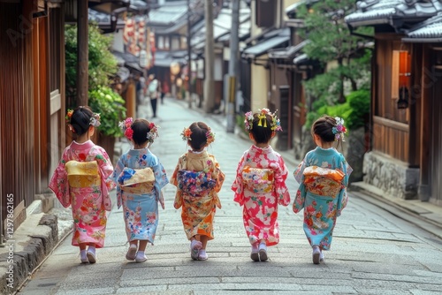 © Supawi, Fototapeta premium Children in traditional Japanese outfits look adorable and festive.