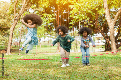 © amorn, Fototapeta premium Children jumping over the rope in the park