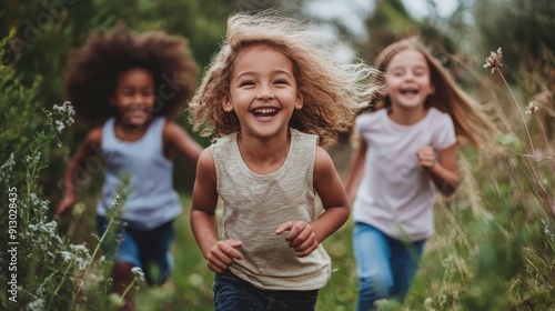 © stardadw007, Obraz premium Children of different ethnicities playing together, fairness, global inclusivity and joy