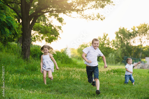 Fototapeta premium children play hide-and-seek in the park. Outdoor summer vacation