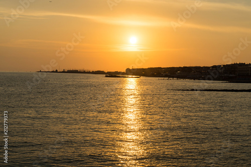 © adellyne, Naklejka premium Children playing in the sea and enjoying sunset in Ostia Lido, Roma, Italy
