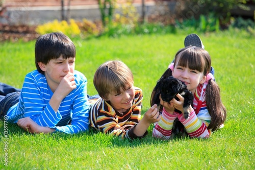 © Marzanna Syncerz, Fototapeta premium Children playing with dog