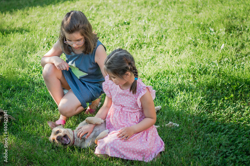 © Юлія Дерід, Obraz premium children playing with dog