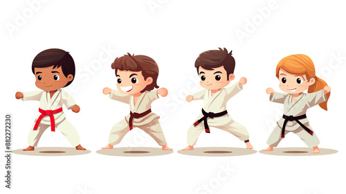 © Dilshad, Fototapeta premium Children practicing martial arts isolated on a white background
