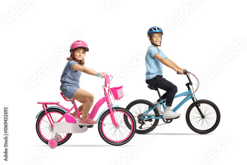 © Ljupco Smokovski, Obraz premium Children riding bicycles with helmets