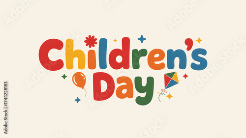 © Animation Place, Fototapeta premium Children’s Day text design : Colorful typography illustration celebrating kids, joy, and childhood happiness
