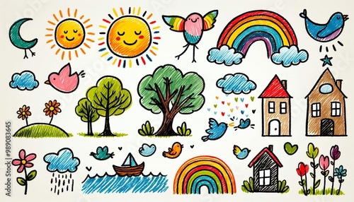 © Светлана Ефименко, Fototapeta premium Children's drawing with pencils