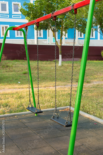 Fototapeta premium Children's entertainment complex, childhood, Child on a swing