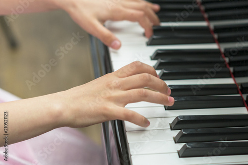 Fototapeta premium children's hands are playing the piano. Child's hand on piano keys.