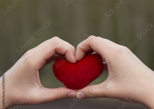 © Oksya, Fototapeta premium Children's hands giving red heart