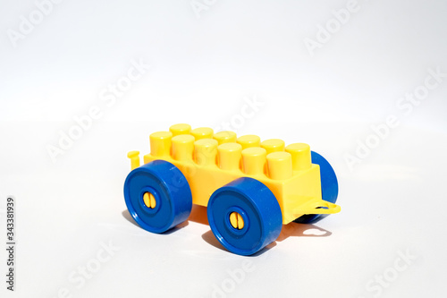 © Khamitsevich Andrey, Fototapeta premium children's old toy car on a white background