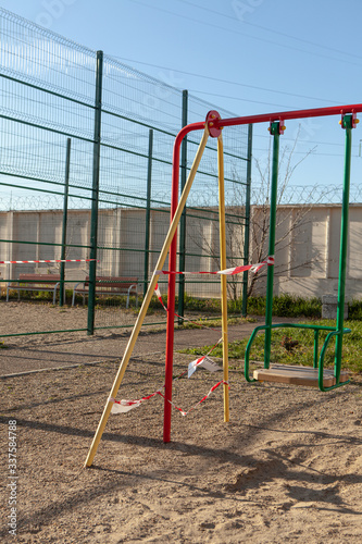 Fototapeta premium Children's Playground in quarantine. The concept of fighting covid-19.