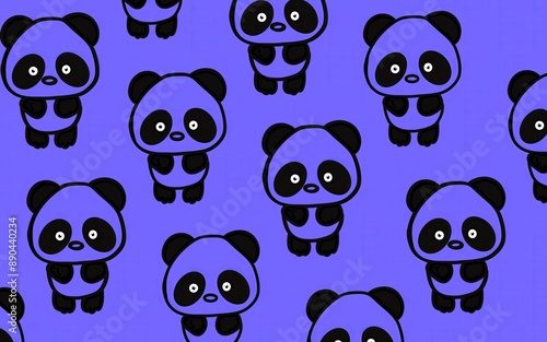 © Nataly G, Fototapeta premium Children's print with pandas pattern. Cute panda pattern background. Cartoon panda wallpaper. Panda art. Pattern with animals. Cute animals art.